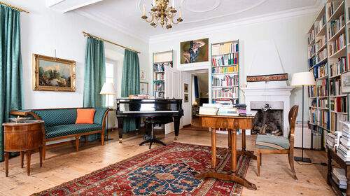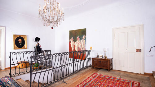 So präsentiert sich die Anlage heute als ein echtes Wohnschloss, das einer größeren Familie mit Freunden und Gästen ausreichend Raum bietet. Insgesamt gibt es im Objekt 9 Bäder, einige Küchen und mehrere separate oder bei Bedarf gut abtrennbare Wohneinheiten. Im ganzen Schloss haben sich viele originale Ausstattungsdetails wie Böden, Decken, Geländer, etc. erhalten und verstrahlen den Glanz einer längst vergangenen Epoche, gepaart mit zeitgemäßem Lebensgefühl.